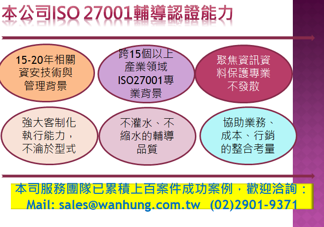 輔導,客制化ISO27001認證所需的一切文件、計畫、紀錄或是方法